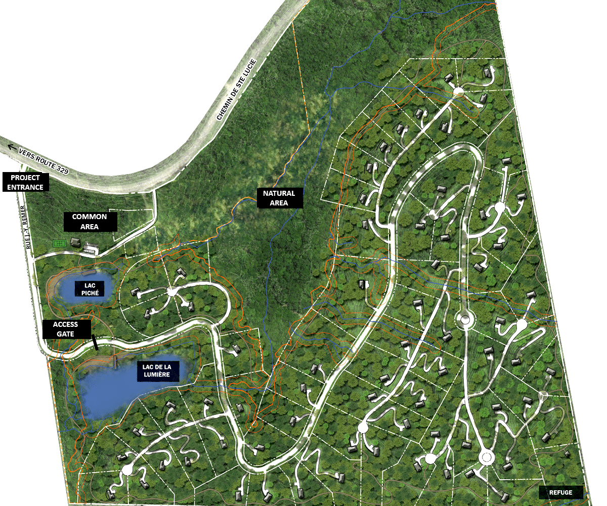 Rising dramatically above Lac de la Lumière, these cliffside lots offer breathtaking views that combine water and height. Forested and sheltered, they remain among our most coveted locations.