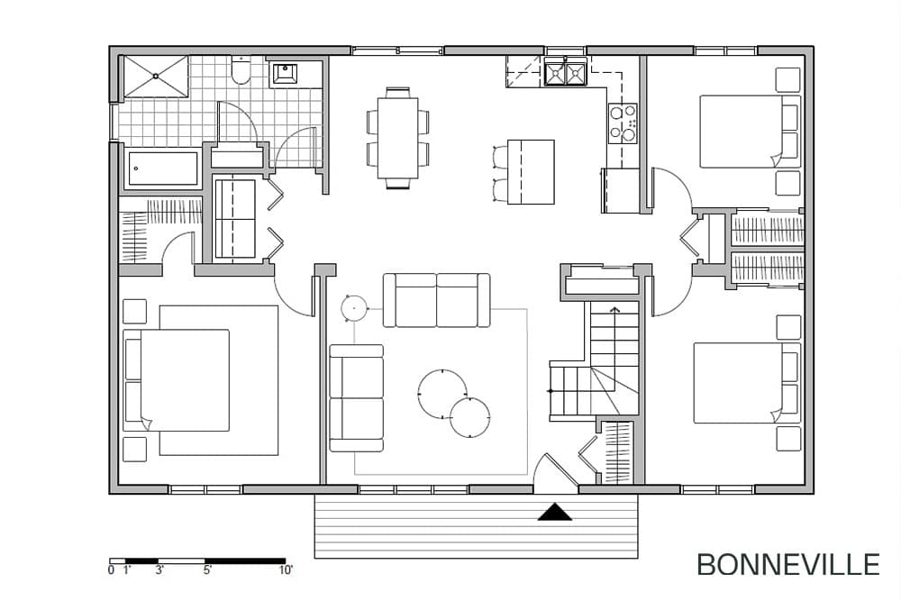 This single-storey home blends modern elegance with farmhouse charm in an architecture that is both simple and refined. its light-toned façade, enhanced by abundant glazing and wood accents, immediately highlights its warm character. inside, circulation flows effortlessly, spaces are filled with natural light, and every square foot is thoughtfully designed to provide maximum everyday comfort. whether as a primary residence or a nature retreat, this model offers a calm, timeless, and welcoming living environment.