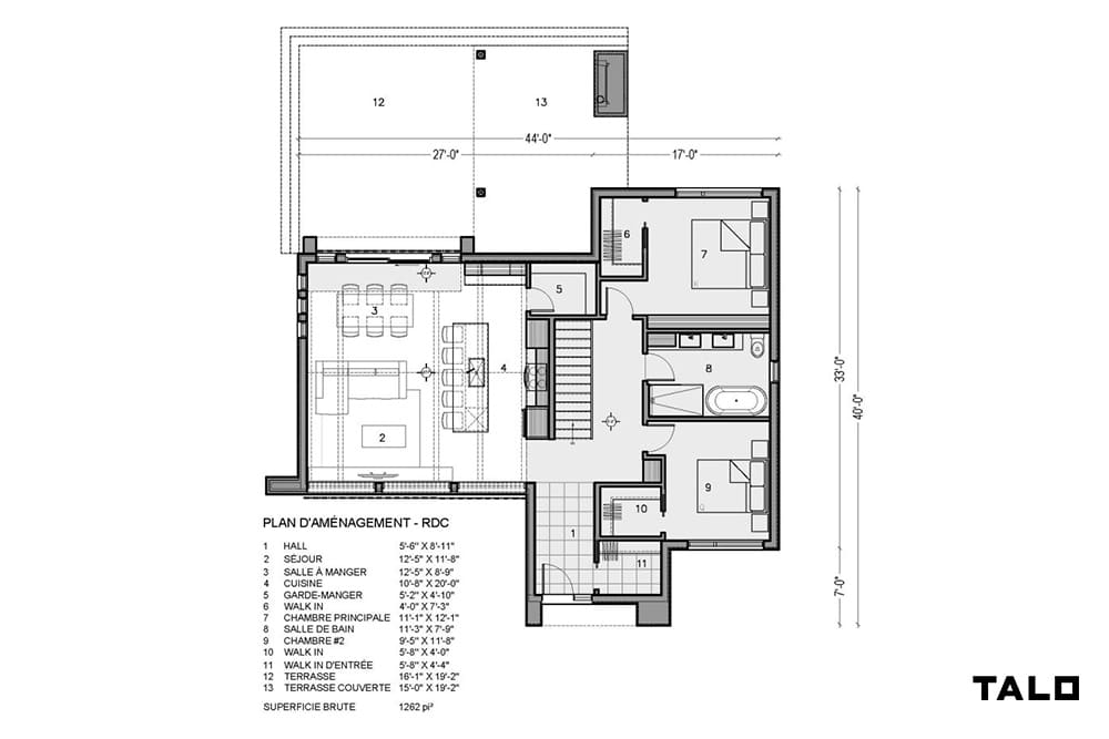 L’intérieur optimise chaque espace pour offrir un équilibre parfait entre fonctionnalité et confort. Les aires de vie ouvertes se prolongent vers l’extérieur grâce à une vaste terrasse, créant un espace idéal pour se détendre et recevoir, dans une ambiance chaleureuse et intime.