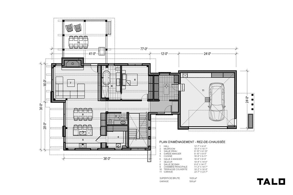 Le budget inclut un terrain standard. Les terrains premium (ex. : topographie particulière, vues supérieures) augmenteront le coût final.
